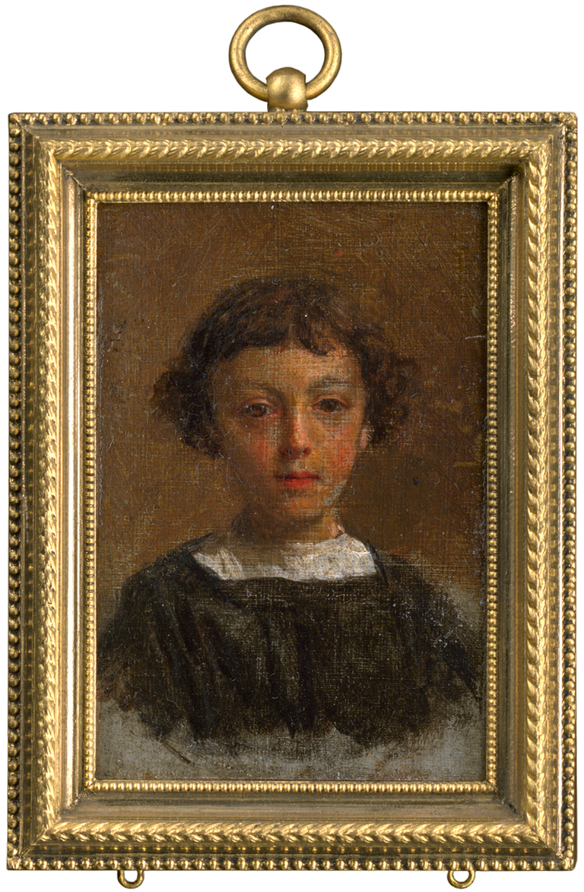 War ein französischer klassischer Maler und Bildhauer, berühmt für seine Schilderungen militärischer Themen. Sehr ungewöhnlich an diesem Porträt sind das kleine Format und der Malgrund Leinwand. Auch ist kein Soldat porträtiert sondern vermutlich sein einziger Sohn Jean Charles, den er später zum Maler ausbildete.