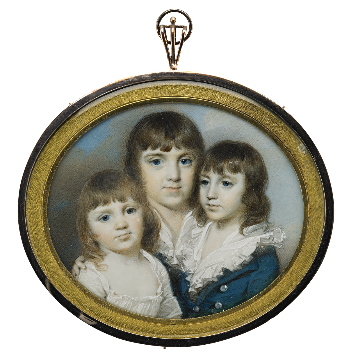 Miniaturen mit mehreren Personen sind selten. Hier sehen wir drei Geschwister, ein Mädchen und zwei Jungen.
