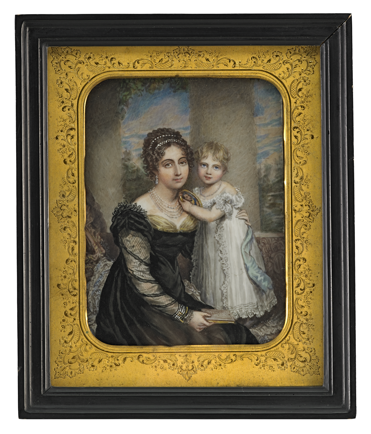 Ein unbekannter Maler hat diese Miniatur nach einem Gemälde von Sir William Beechey geschaffen. Es zeigt Prinzessin Victoria, Duchess of Kent mit ihrer Tochter Victoria, der späteren Queen Victoria, die eine Miniatur mit dem Bild ihres 1820 verstorbenen Vaters in Händen hält.