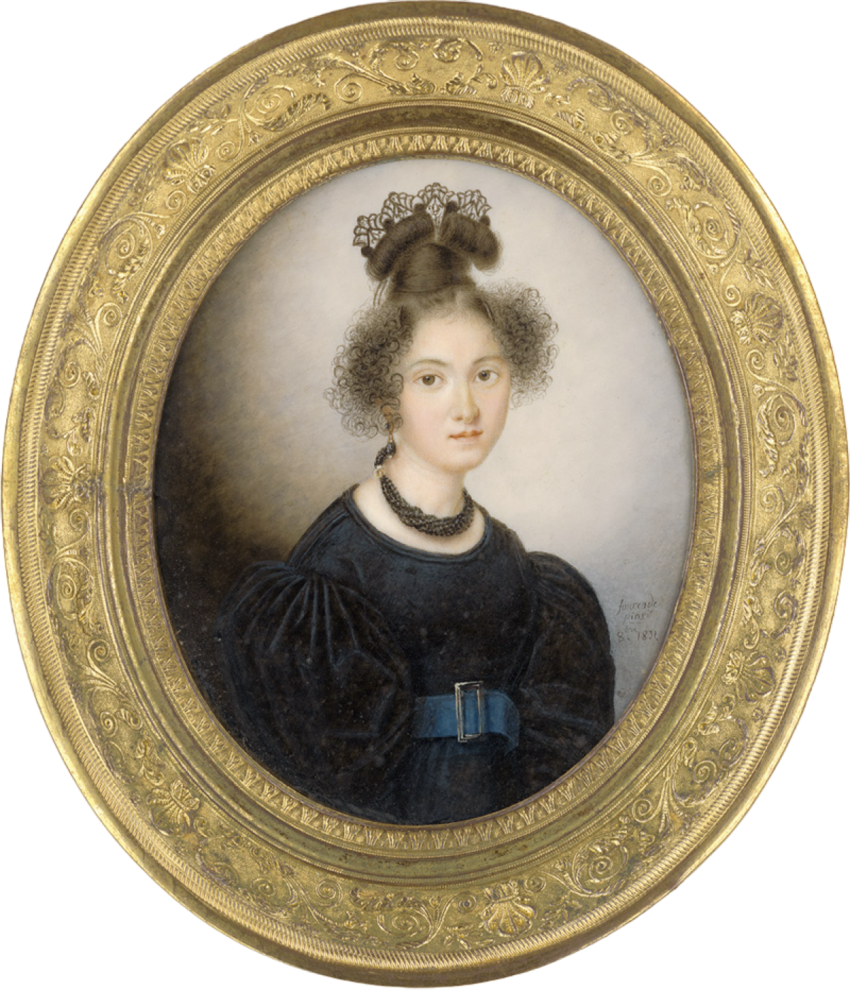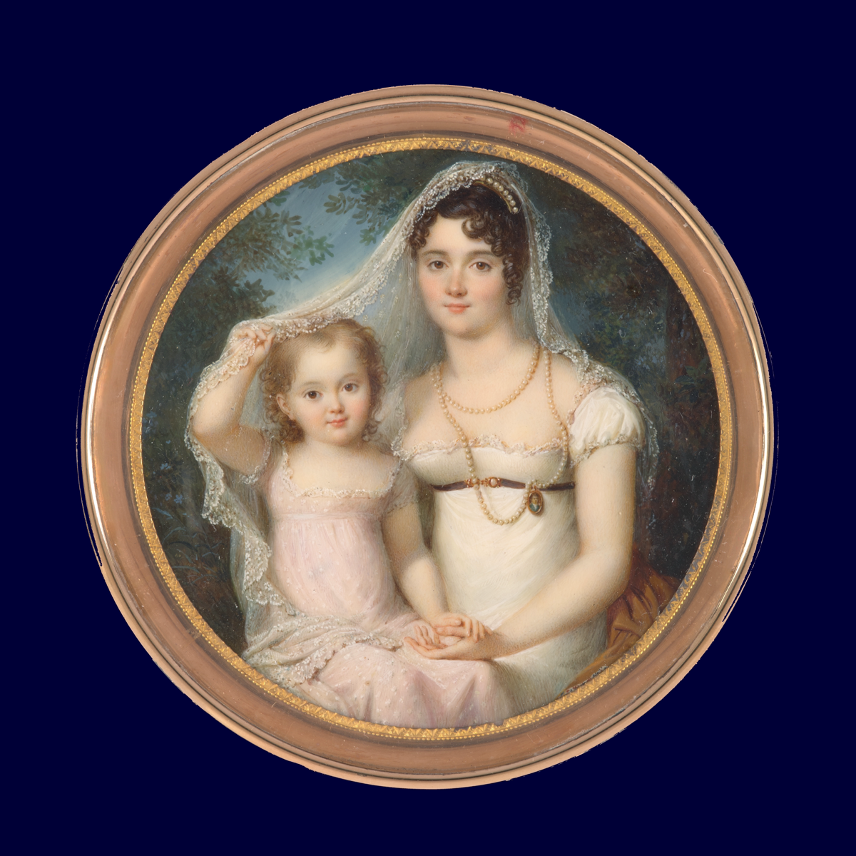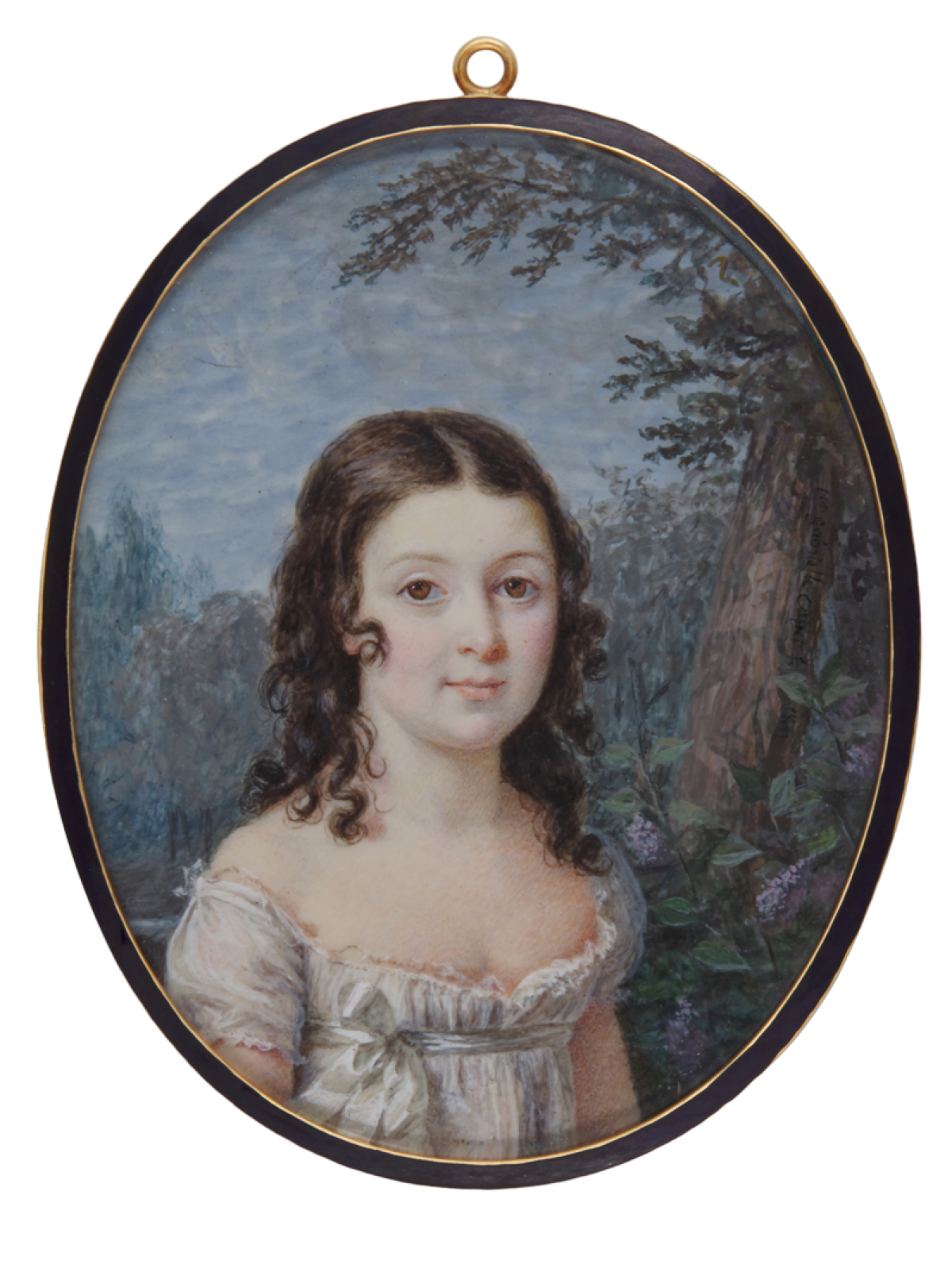 Frisch und heiter wirkt die Dame in diesem Porträt, das Louis Marie Sicardi 1803 malte. Die innigen Gefühle, die den damaligen Adressaten des Bildnisses mit der Dargestellten verbanden, drückt die Rahmung aus: Ein kostbares, in Gold gearbeitetes Etui fasst das Bildnis.