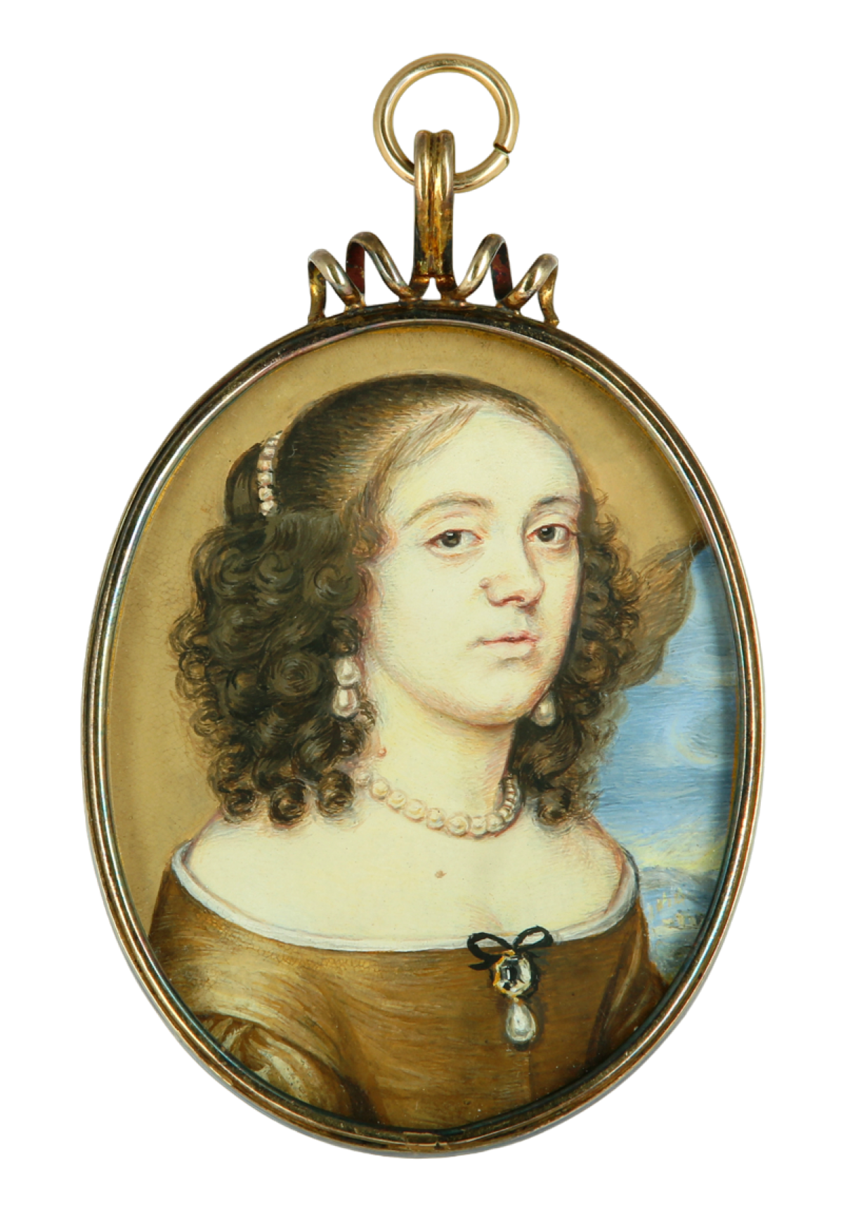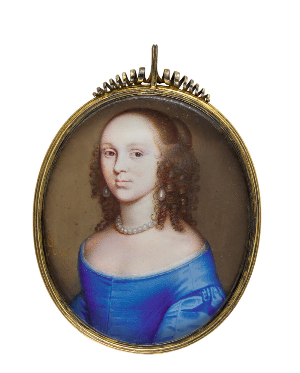 Das Bildnis einer jungen Frau in blauem Kleid und mit großen Perlohrringen malte Cooper 1656. Die Schlichtheit der Darstellung und das nur angedeutete Lächeln des Modells verleihen dem Bildnis eine geheimnisvolle Ausstrahlung.